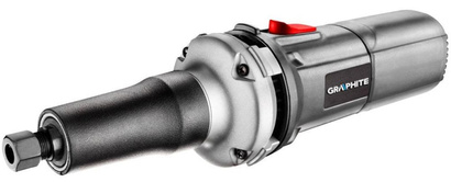 Wysokiej klasy szlifierka prosta GRAPHITE z silnikiem o mocy 710 W, przeznaczona do precyzyjnego szlifowania i polerowania materiałów o zróżnicowanej strukturze i twardości. Szczególnie pomocna podczas szlifowania materiałów po spawaniu. Maksymalna średnica tarczy wynosi 125 mm. Urządzenie dzięki ergonomicznemu kształtowi oraz dokładnemu wyważeniu zapewnia wysoki komfort pracy. Wydłużone wrzeciono pozwala na dostęp do wąskich przestrzeni. Szlifierka dla bezpieczeństwa została wyposażona w blokadę przypadkowego włączenia, ponadto wrzeciono osadzono w obudowie ze stopu aluminium. Odpowiednie rozmieszczenie otworów wentylacyjnych zabezpiecza przed przegrzaniem silnika. Urządzenie posiada funkcję płynnej regulacji obrotów. Prędkość obrotowa głowicy wynosi od 12000 do 28000 obrotów na minutę. Istnieje możliwość samodzielnej wymiany zużytych szczotek węglowych. W zestawie ze szlifierką znajdują się klucze montażowe. Zgodność z europejskimi standardami zapewnia certyfikat CE.