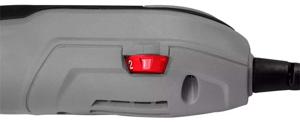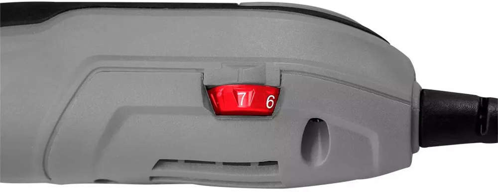 Narzędzie posiada praktyczną stopę szlifierską, brzeszczot z nasypem do ceramiki, skrobak, brzeszczot półokrągły do drewna i tworzyw, brzeszczot wgłębny szeroki oraz brzeszczot wgłębny wąski. Ergonomiczna i antypoślizgowa rękojeść zapewnia wysoki komfort pracy.