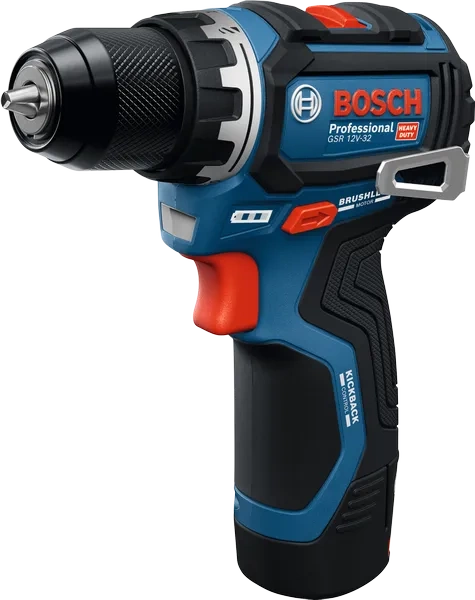Bosch GSR 12V-32 Professional to wyjątkowo kompaktowa i lekka wiertarko-wkrętarka akumulatorowa klasy 12 V, stworzona do precyzyjnej pracy w ciasnych i trudno dostępnych miejscach. Dzięki funkcji Advanced KickBack Control narzędzie zapewnia wysoki poziom ochrony użytkownika, ograniczając ryzyko kontuzji w razie zaklinowania wiertła. Mimo bardzo małych wymiarów (142 mm długości, 160 mm wysokości) model oferuje pełną funkcjonalność do wiercenia i wkręcania w drewnie oraz metalu. Silnik bezszczotkowy zwiększa wydajność i trwałość, a niska waga – zaledwie 0,7 kg – pozwala pracować dłużej bez zmęczenia. W wyposażeniu znalazł się solidny metalowy uchwyt wiertarski, jasne oświetlenie LED oraz praktyczny zaczep do paska, zwiększający wygodę podczas pracy.Dane techniczne:
