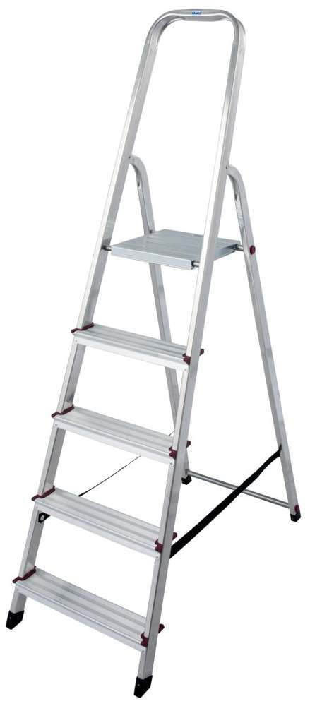 Kompaktowa aluminiowa drabina wolnostojąca do różnych prac wewnątrz pomieszczeń, z jednostronnym wejściem i wygodną platformą roboczą.