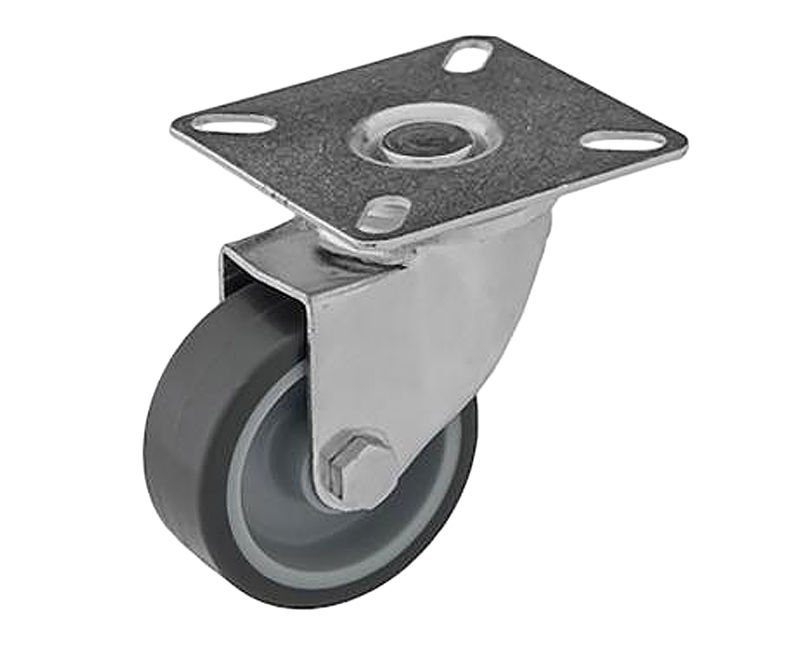 Zestawy kołowe skrętne serii KPA-TPA, mocowane na tzw. płytkę są połączeniem widelca aparaturowego wykonanego z tłoczonej blachy stalowej ocynkowanej oraz koła z piastą polipropylenową i oponką termoplastyczną z szarej niebrudzącej gumy.