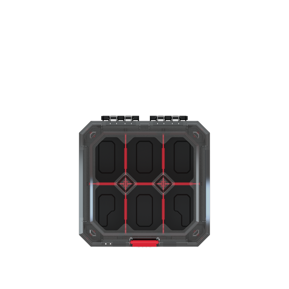 W pokrywie organizera znajduje się 5 wyjmowanych przegród, dlatego jest bardzo funkcjonalny i każdy majsterkowicz może dostosować go do swoich potrzeb.