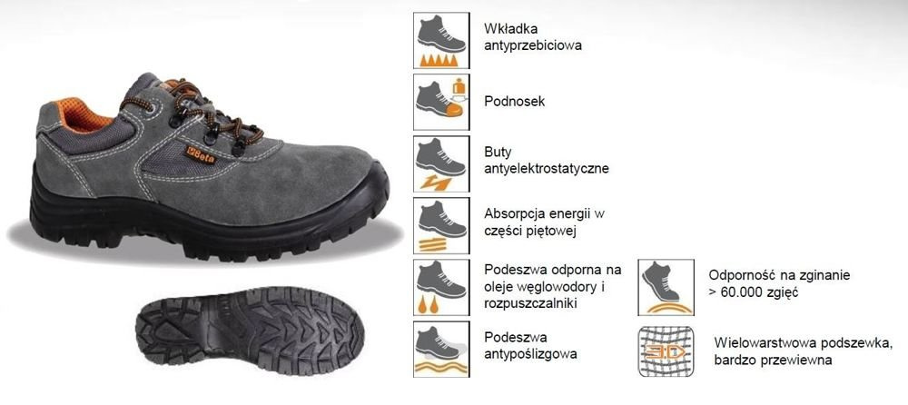 - Profesjonalne buty zamszowe BETA 7248G z stalowym podnoskiem i wkładką antyprzebiciową.