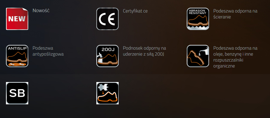 - antypoślizgowa podeszwa, odporna na ścieranie, oleje, benzynę i inne rozpuszczalniki organiczne, podnosek stalowy wytrzymujący uderzenie do 200J