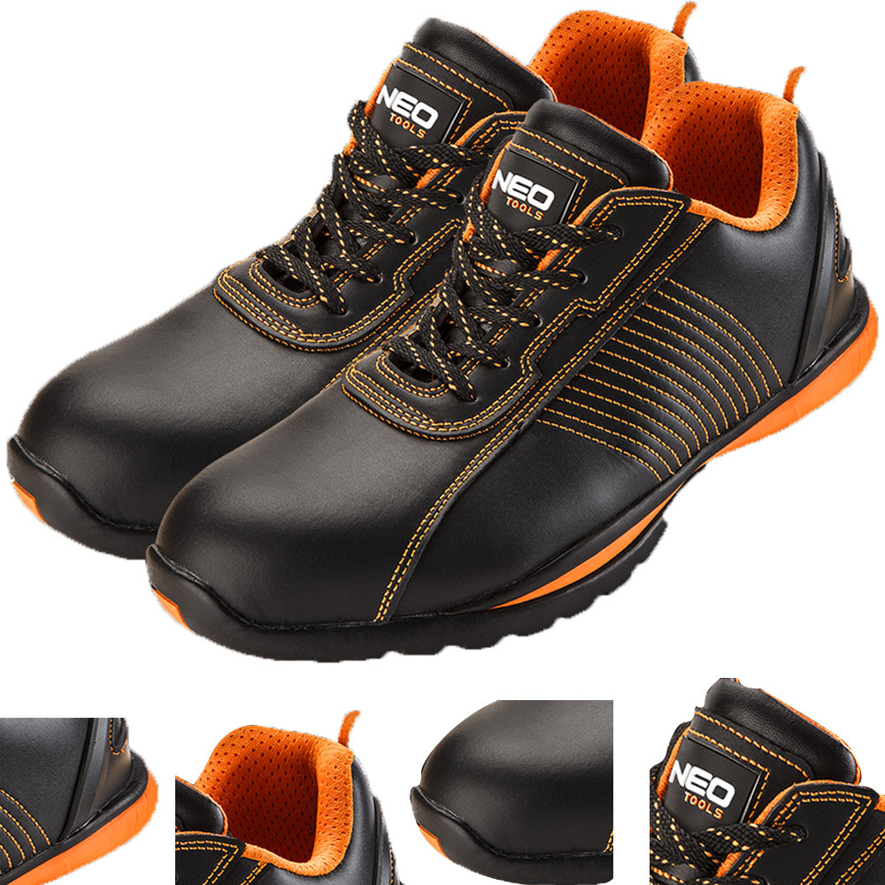 Półbuty robocze NEO to podstawowa ochrona podczas pracy. Cholewka wykonana z łatwej w konserwacji skóry. Antypoślizgowa podeszwa wykonana z pianki EVA pokrytej gumą zapewnia wysoki komfort i skuteczne amortyzowanie wstrząsów, gwarantuje bezpieczeństwo i wygodę. Tył buta wzmocniony tworzywem oraz metalowy nosek chronią przed urazami mechanicznymi. Dzięki miękkiemu wykończeniu wewnątrz buta komfort pracy pozostaje na wysokim poziomie. Oznaczenie CE to gwarancja bezpieczeństwa, dowodzi, że produkt spełnia wszystkie unijne wymagania. Marka NEO spełnia oczekiwania profesjonalistów.