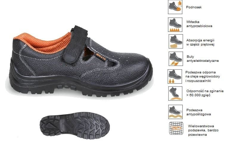 Profesjonalne sandały bezpieczne BETA7247BK, perforowane o dużej przewiewności.