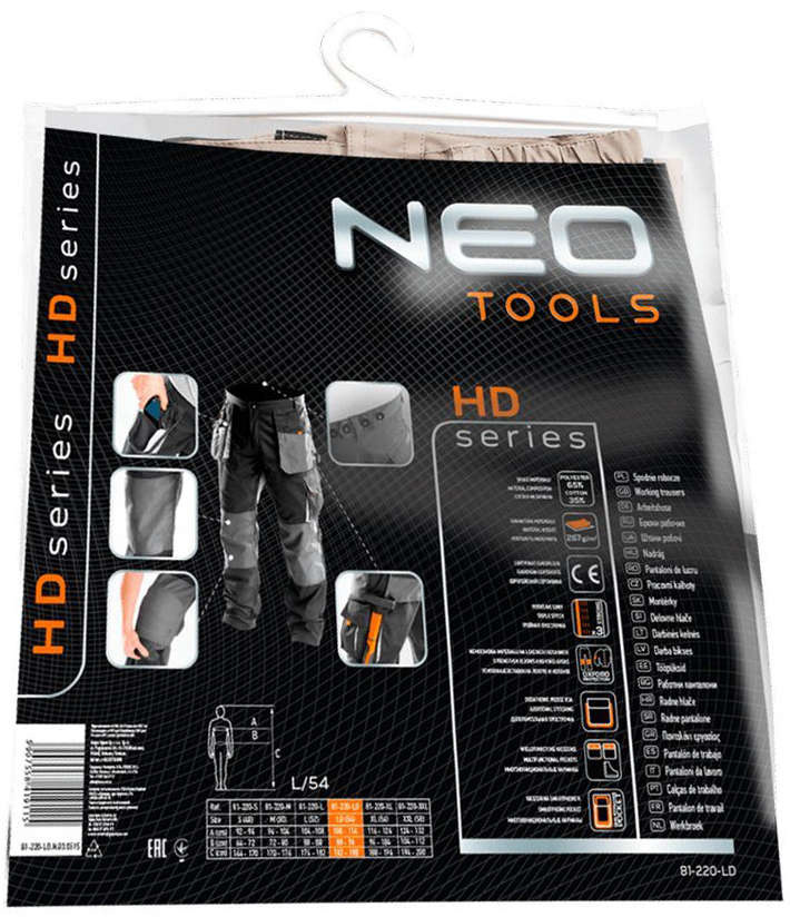 • Wzmocnione spodnie robocze NEO HD 81-220 XXL, z miejsce na nakolanniki i wielofunkcyjnymi kieszeniami, zgodne z EN ISO 13688.
