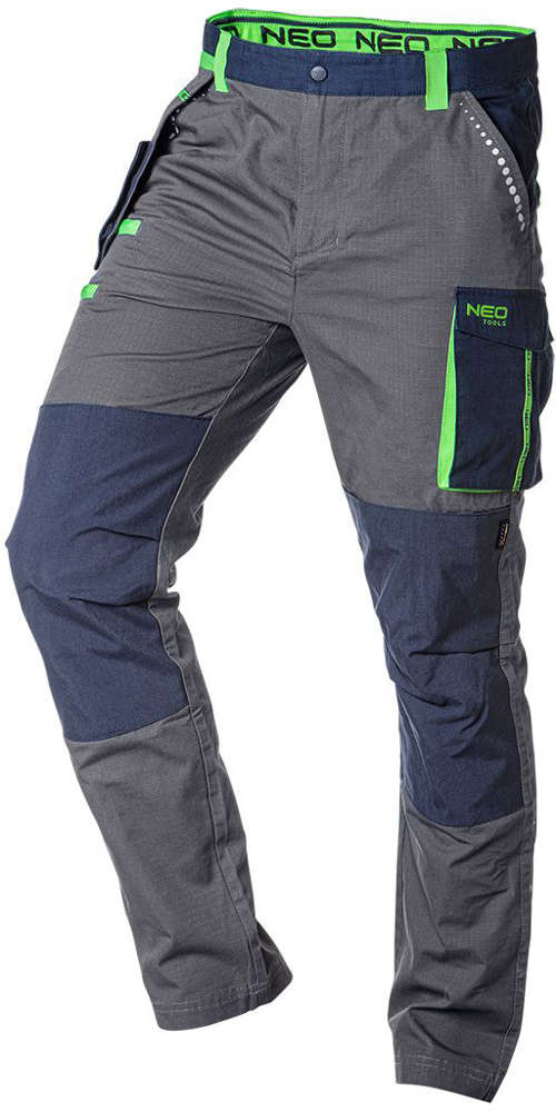 Spodnie robocze PREMIUM, 100% bawełna, ripstop, NEO, wygodne spodnie do wszelkich prac, przeznaczone zarówno do użytku zawodowego, jak i domowego. Zostały wykonane ze wzmocnionej, trwałej tkaniny ripstop. Charakteryzuje się ona specjalną fakturą, która blokuje dalszemu rozdzieraniu ubrania, kiedy zostanie uszkodzone w sposób mechaniczny.
