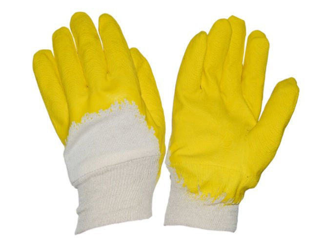 Wykonane zostały z dzianiny, powleczone wytrzymałą zółtą gumą o porowatej strukturze, dzięki czemu doskonale zachowują przyczepność na śliskich powierzchniach. Trudnościeralne i odporne na zużycie. Kategoria I.