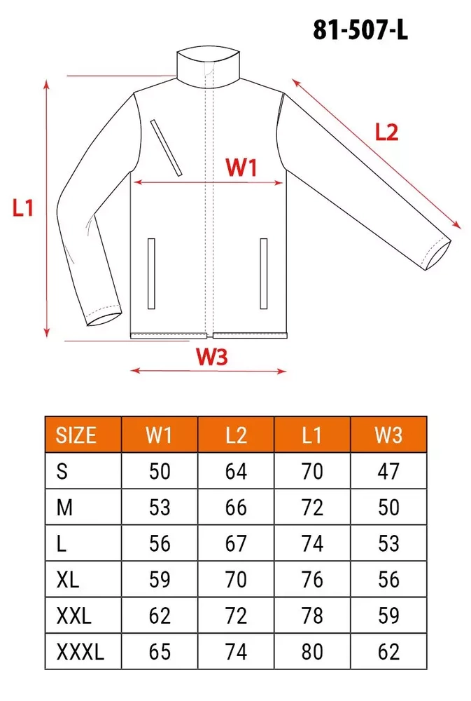 - nadruk odblaskowy na rękawach i plecach