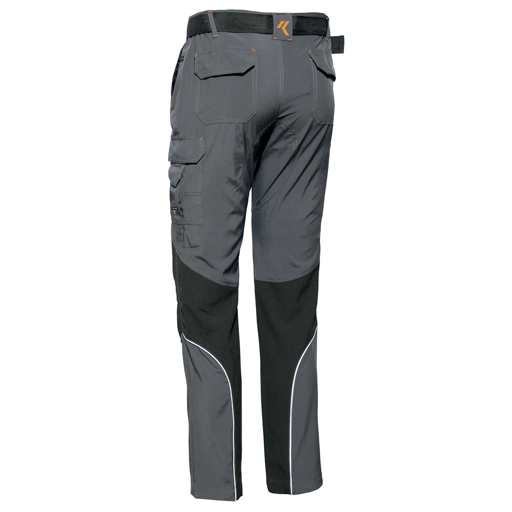 - Spodnie z lekkiego softshellu z kontrastowymi wstawkami odpornymi na przetarcia.